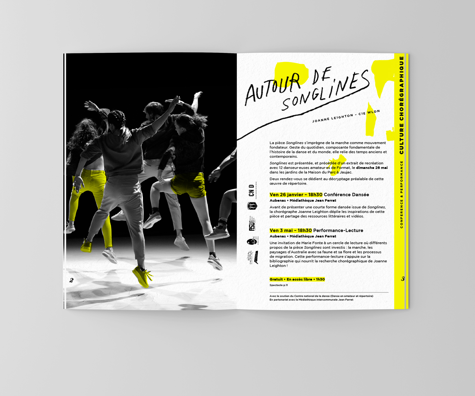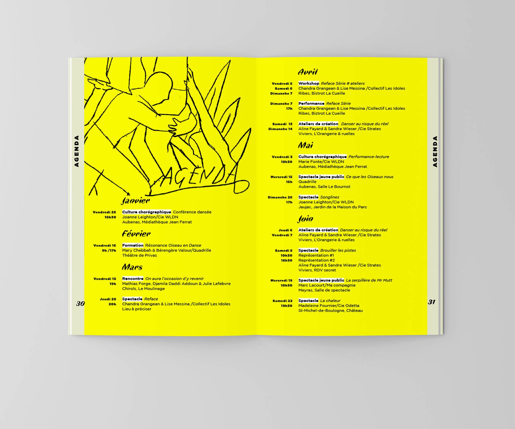 Visuel et brochure de saison de l’association Format Danse en Ardèche, qui œuvre pour la promotion de la Danse.