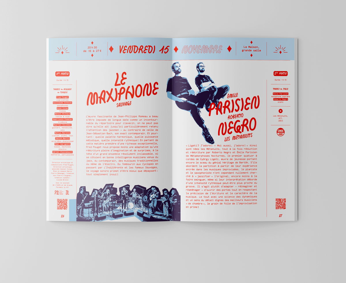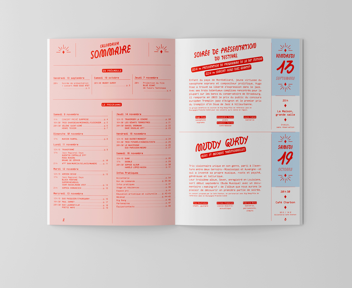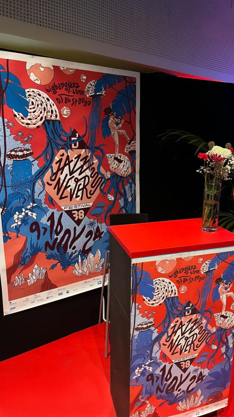 Roger Fontanel et l’équipe du D’jazz Nevers Festival ont souhaité poursuivre le travail que nous avions commencé ensemble autour de l’identité graphique du festival. Toujours avec un visuel surréaliste dessiné, en deux tons directs qui veut inclure un public large, et pas seulement des initiés.