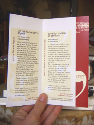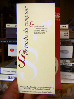 Création de la plaquette des jeudis du comptoir, rencontres littéraires mensuelles marseillaises. 2004