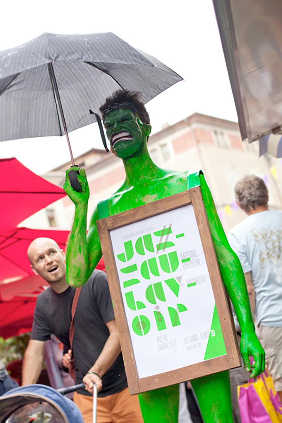 affiche + tract 2 tons directs, repiquage des tracts sur une couche de l’affiche, + performance colorée de Bastien Mignot.