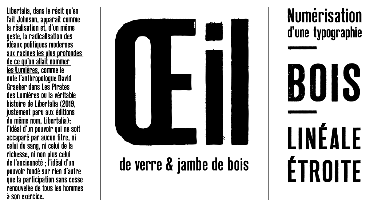 numérisation d’une typographie bois de l’atelier, une Antique étroite, idéale pour les tracts politiques d’ultragauche, les concours de cul-sec de rhum vieux, et les goûters d’anniversaire.