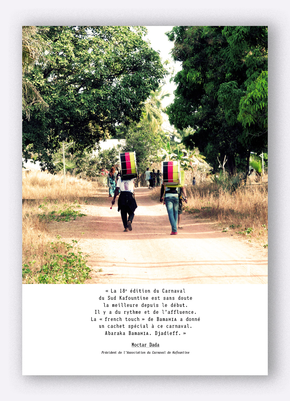 « la 18e édition du Carnaval du Sud Kafountine est sans doute la meilleure depuis le début. Il y a du rythme et de l’affluence. La french touch de Bamahia a doné un cachet spécial à ce carnaval.
