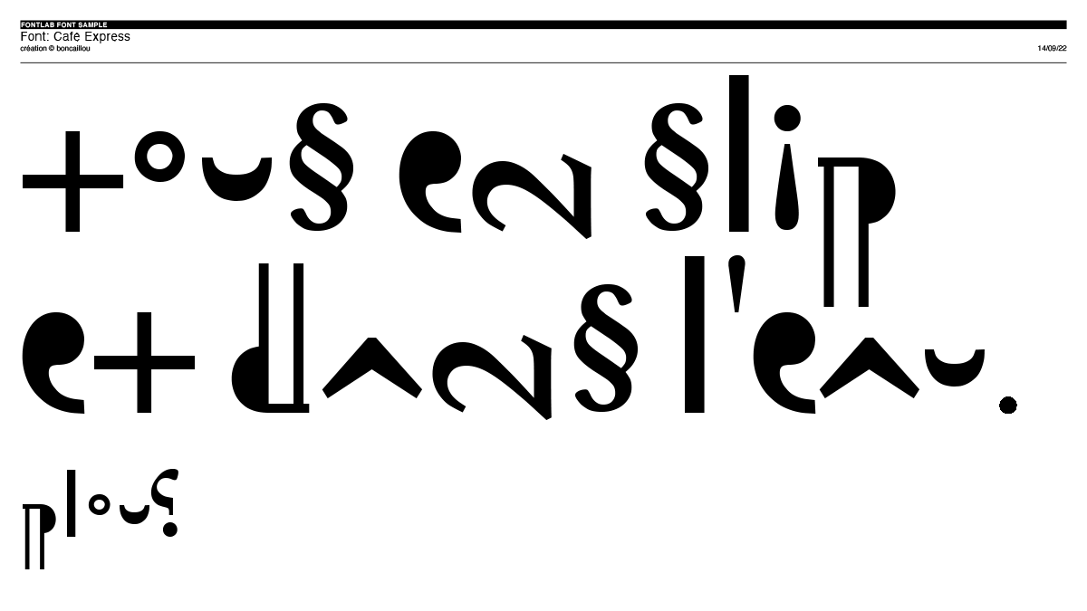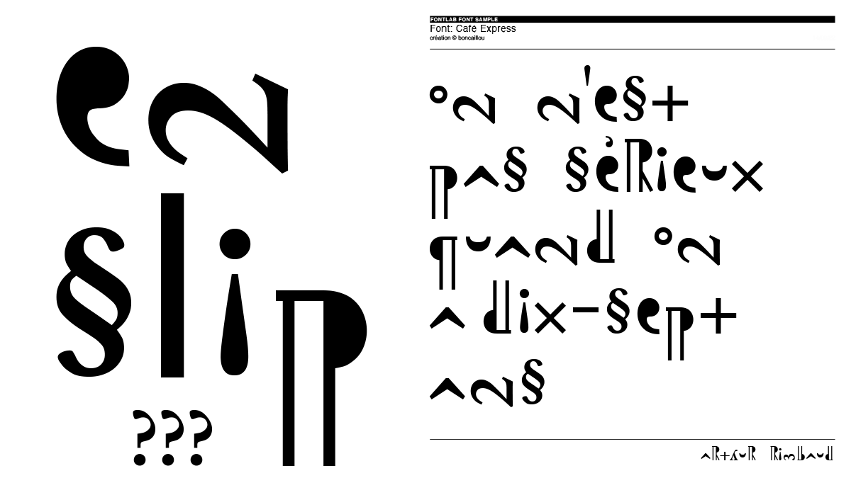 Une typographie à la grande limite de la lisibilité, créée initialement pour les Cafés Littéraires, et qui jouent autour des symboles de l’édition (paragraphe, ponctuations, chiffres)… Prendre un signe pour un autre.