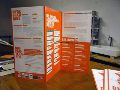 Un visuel en linogravure, une couleur, warm red, et des programmes en 2 tons directs (warm red et noir).