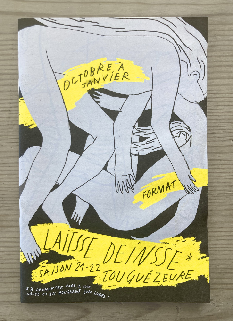 Des corps dessinés qui s’entremêlent, un jaune fluo et des allusions à des tubes sur lesquels nous avons (presque) tous dansés, dans une langue internationale très approximative…