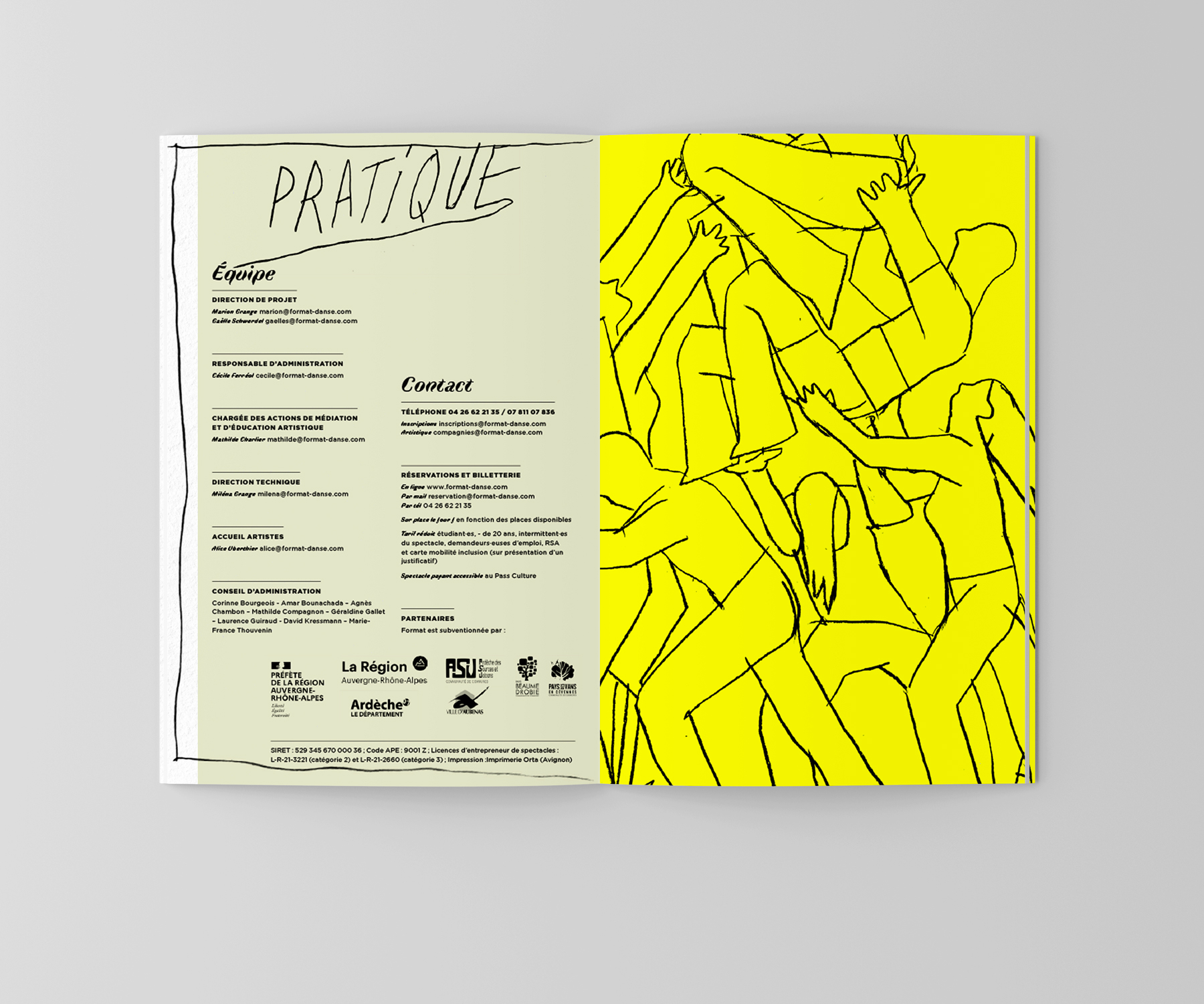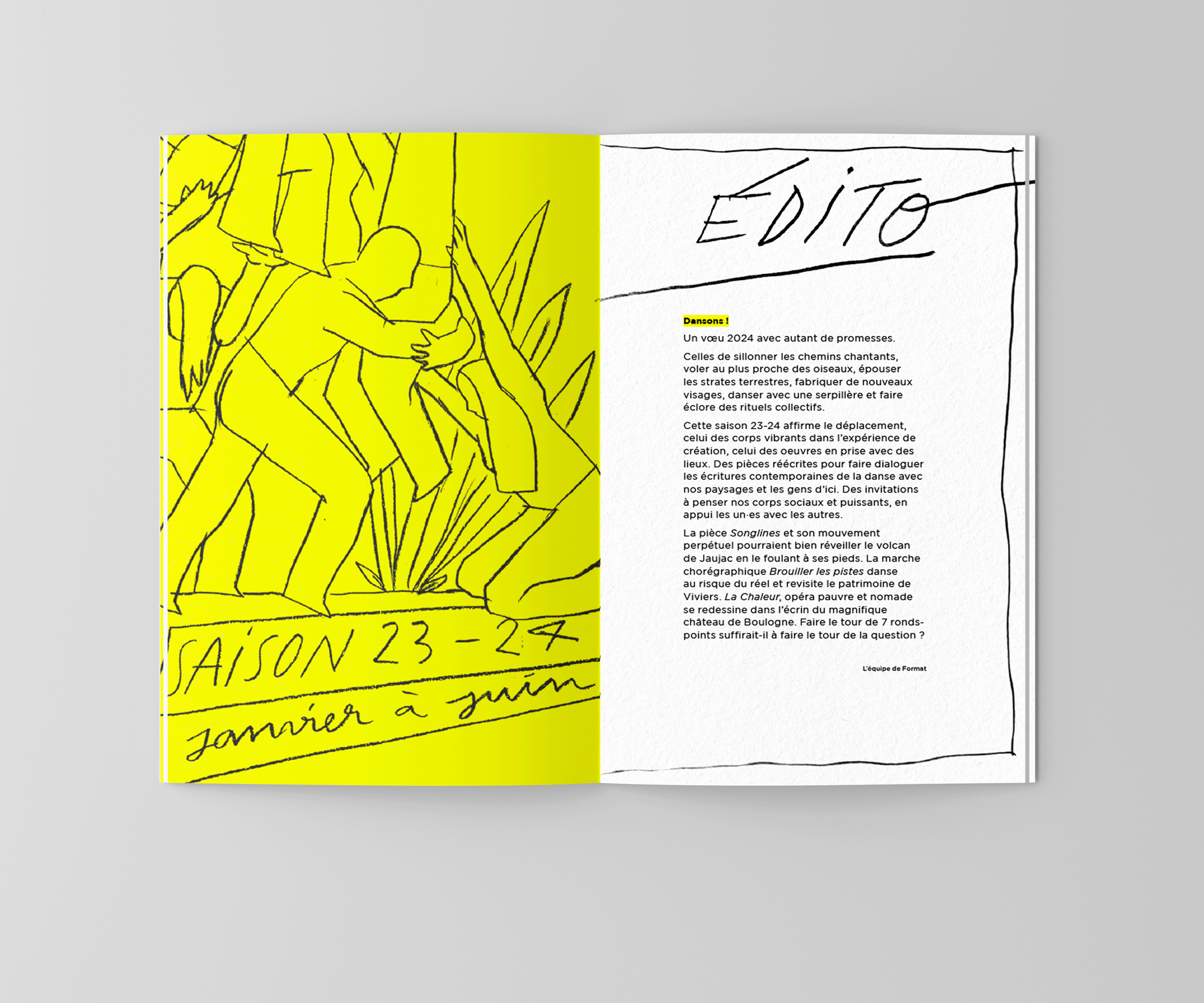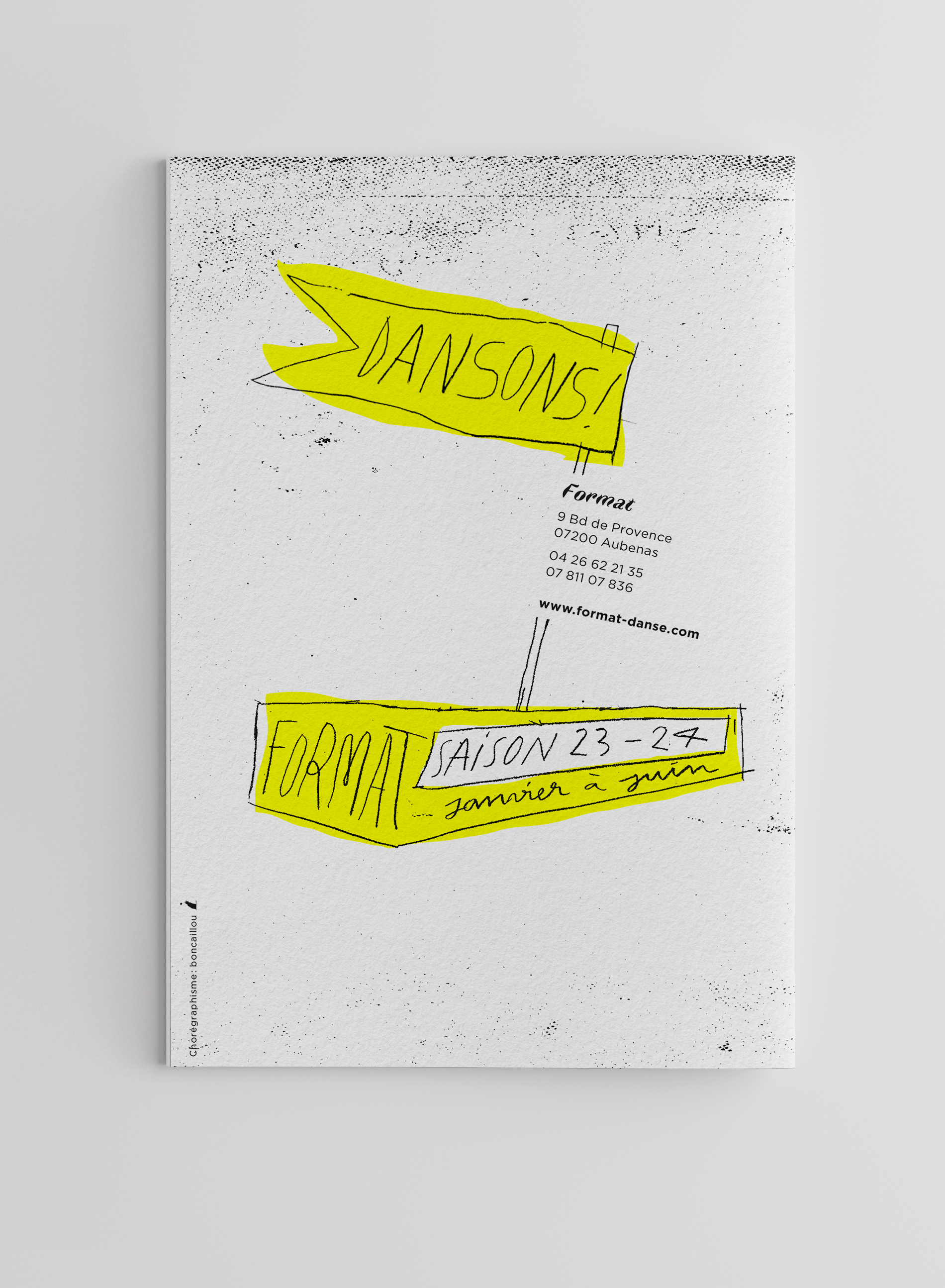 Visuel et brochure de saison de l’association Format Danse en Ardèche, qui œuvre pour la promotion de la Danse.
