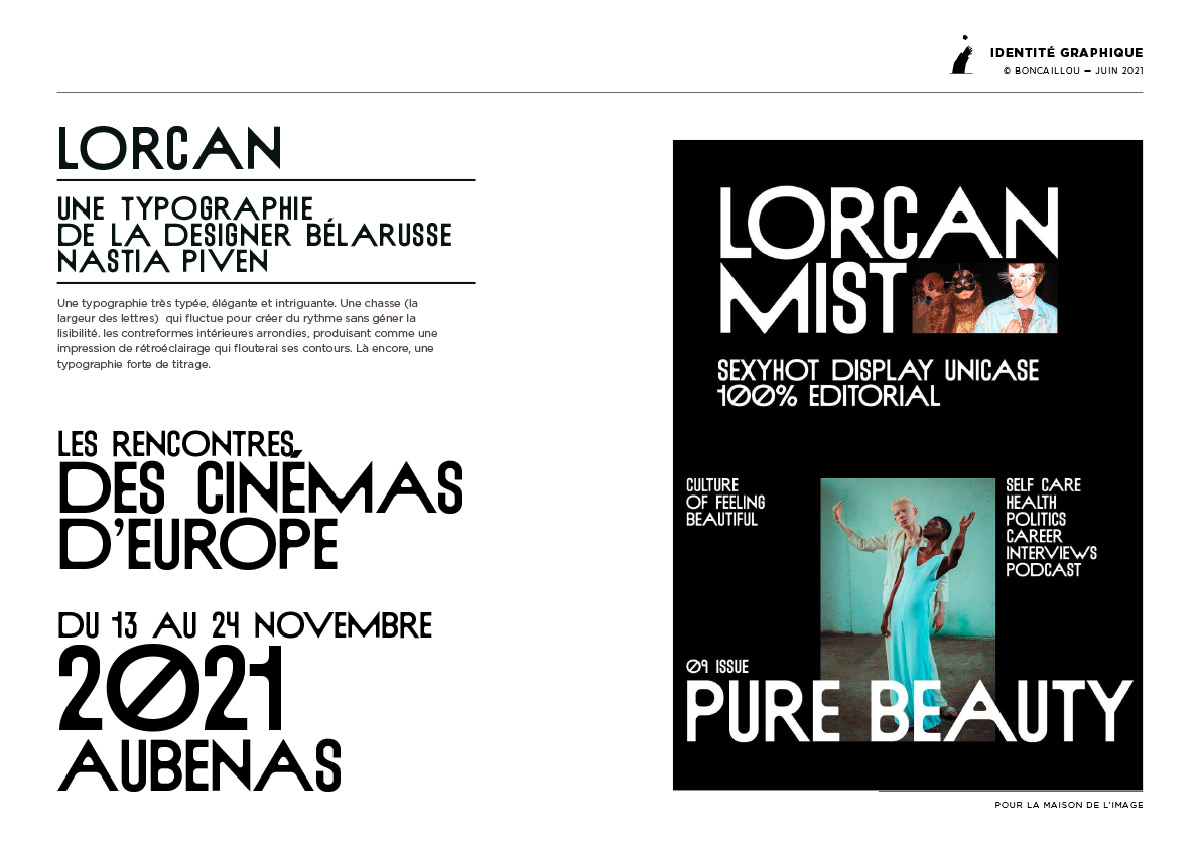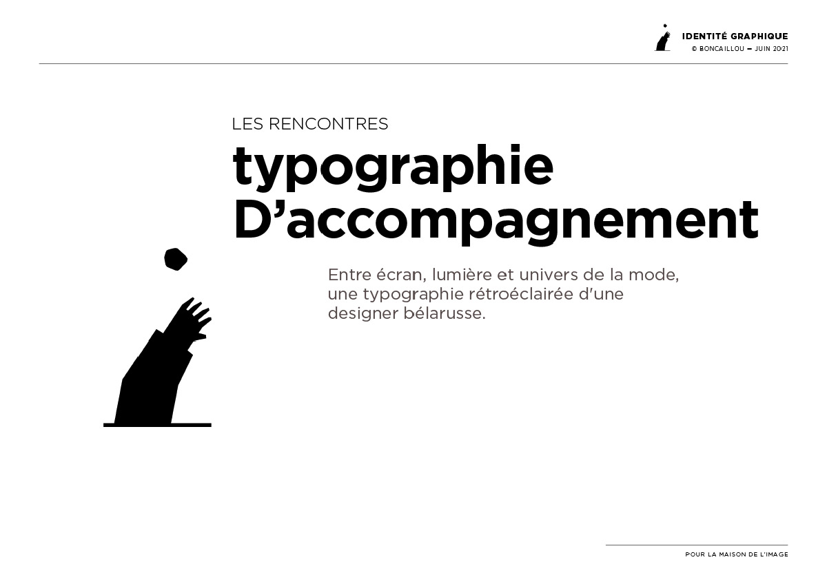 au centre de l’évènement. Une typographie d’accompagnement, lisible et audacieuse, servira également à signer les éditions (affiches, programmes, etc.).
