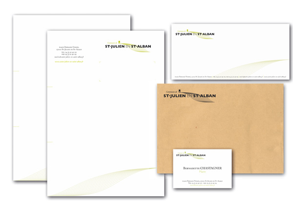 la commune de St Julien en St Alban à fait appel à nous pour concevoir leur nouvelle identité visuelle. Une identité qui s’appuie sur une analogie visuelle entre une spécificité industrielle historique (industrie textile) et un territoire rural vallonné.