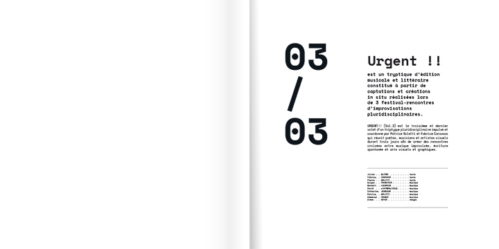 Urgent est un tryptique d’édition musicale et littéraire constitué à partir de captations et créations in situ réalisées lors de 3 festival-rencontres d’improvisations pluridisciplinaires.