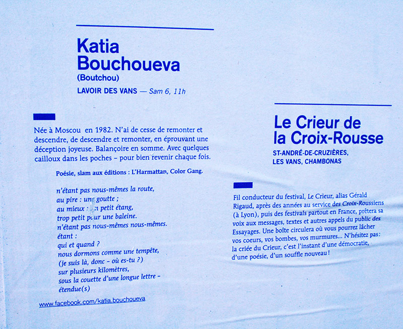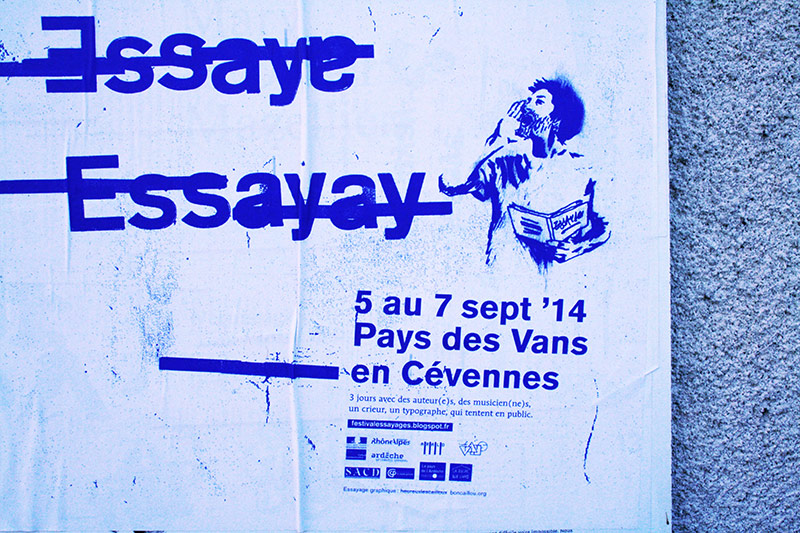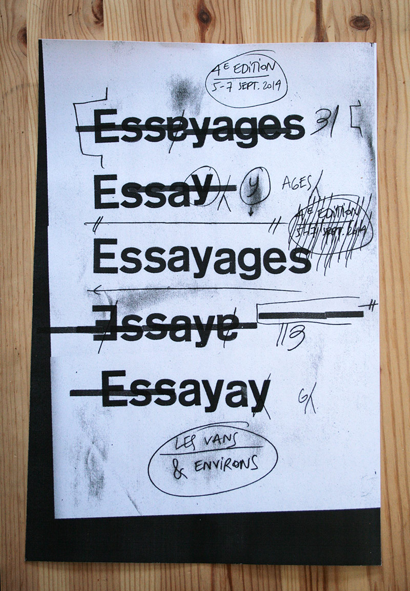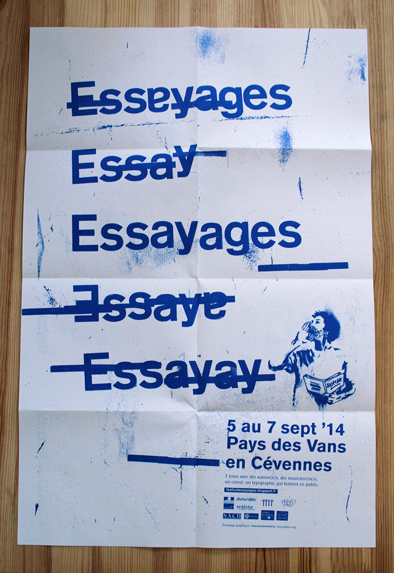 Une volonté de radicaliser l’image de ce festival pointu dans ses choix d’auteur, toujours la contrainte économique qui fait assembler programme et affiche, et de la typo de la typo de la typo (composé en plomb au préalable pour le visuel). L’édito se dote de corrections ortho-typo visibles, pour souligner le travail en cours, qui essaye…