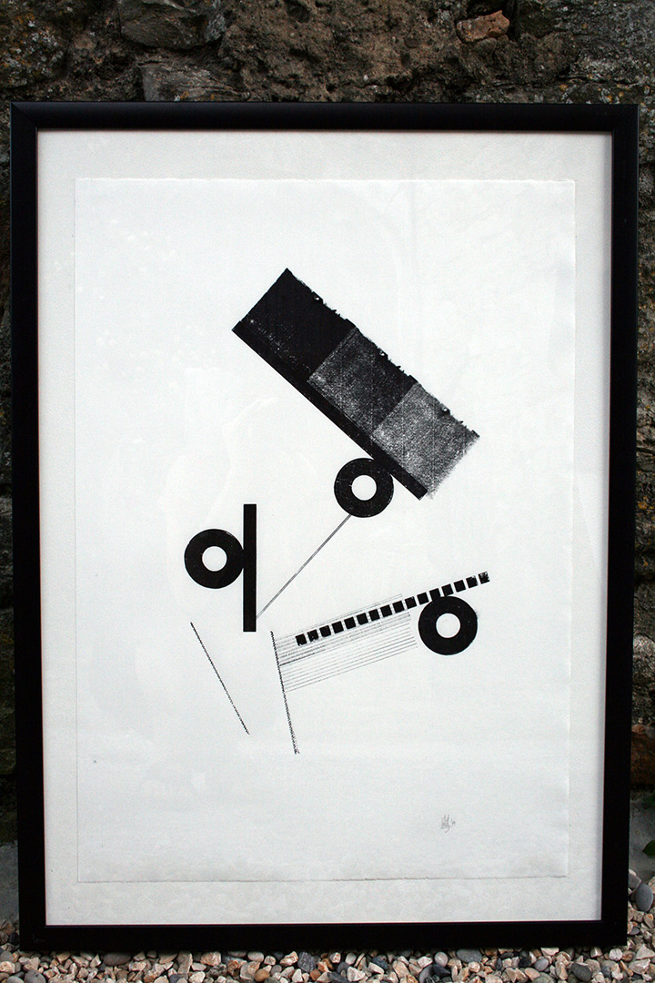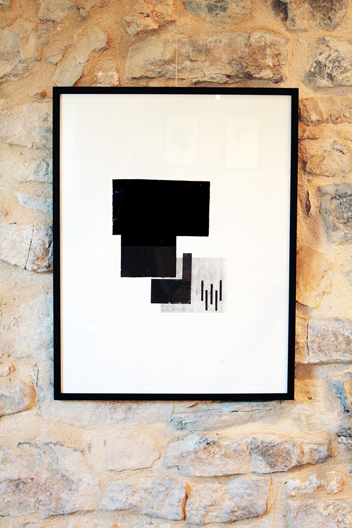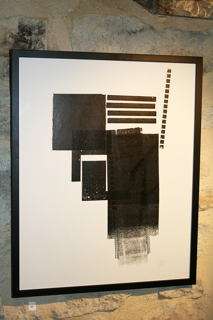 Des linogravures pour Evelyne Mary, et des monotypes noir & blanc pour ma part. Quelques objets d’auto-édition étaient également présentés.