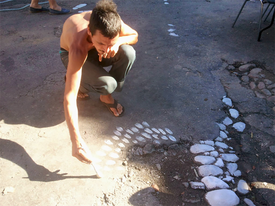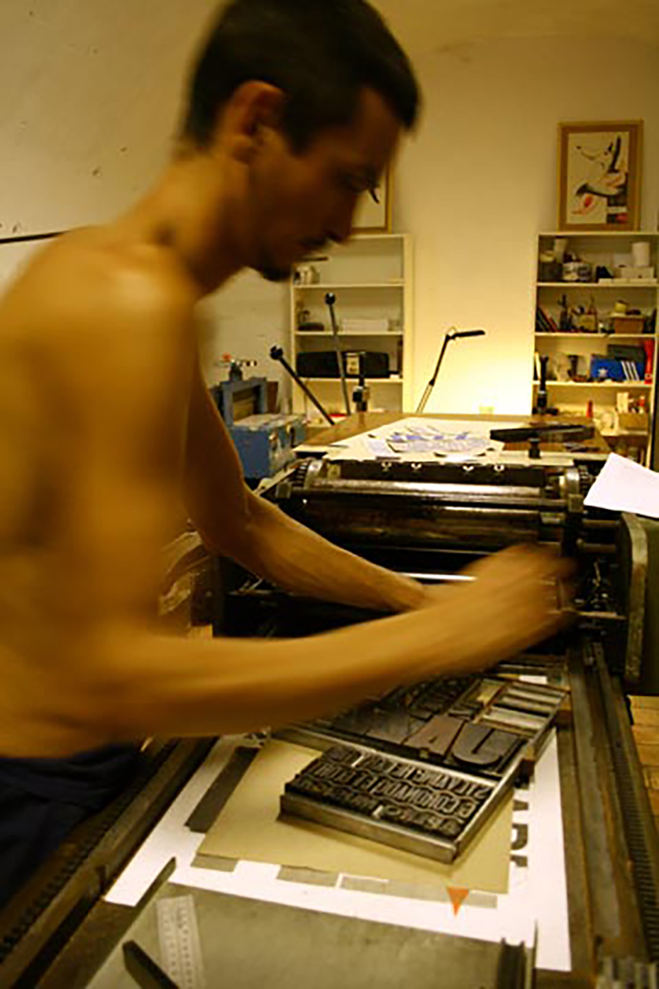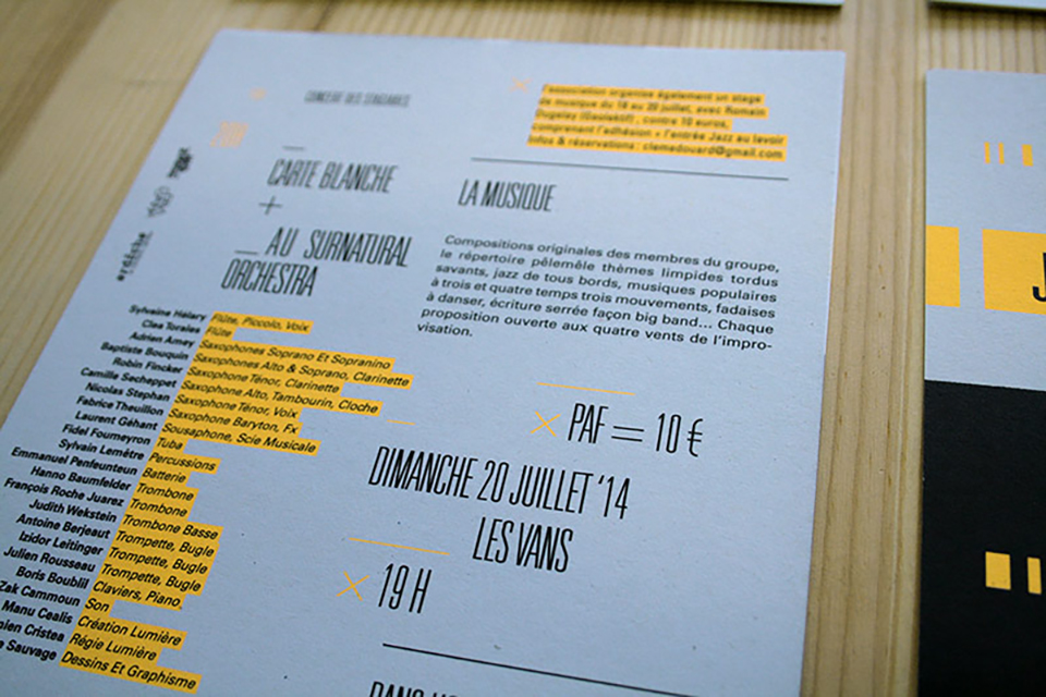 affiche + tract 2 tons directs, repiquage des tracts sur une couche de l’affiche, + performance colorée de Bastien Mignot.