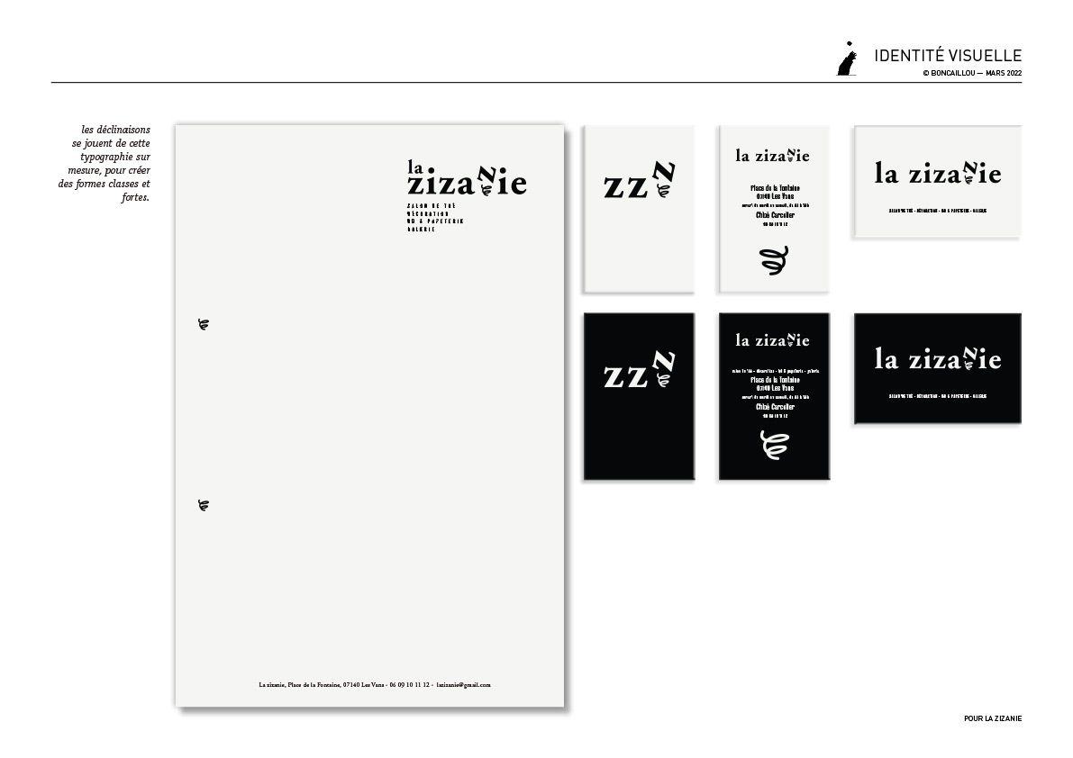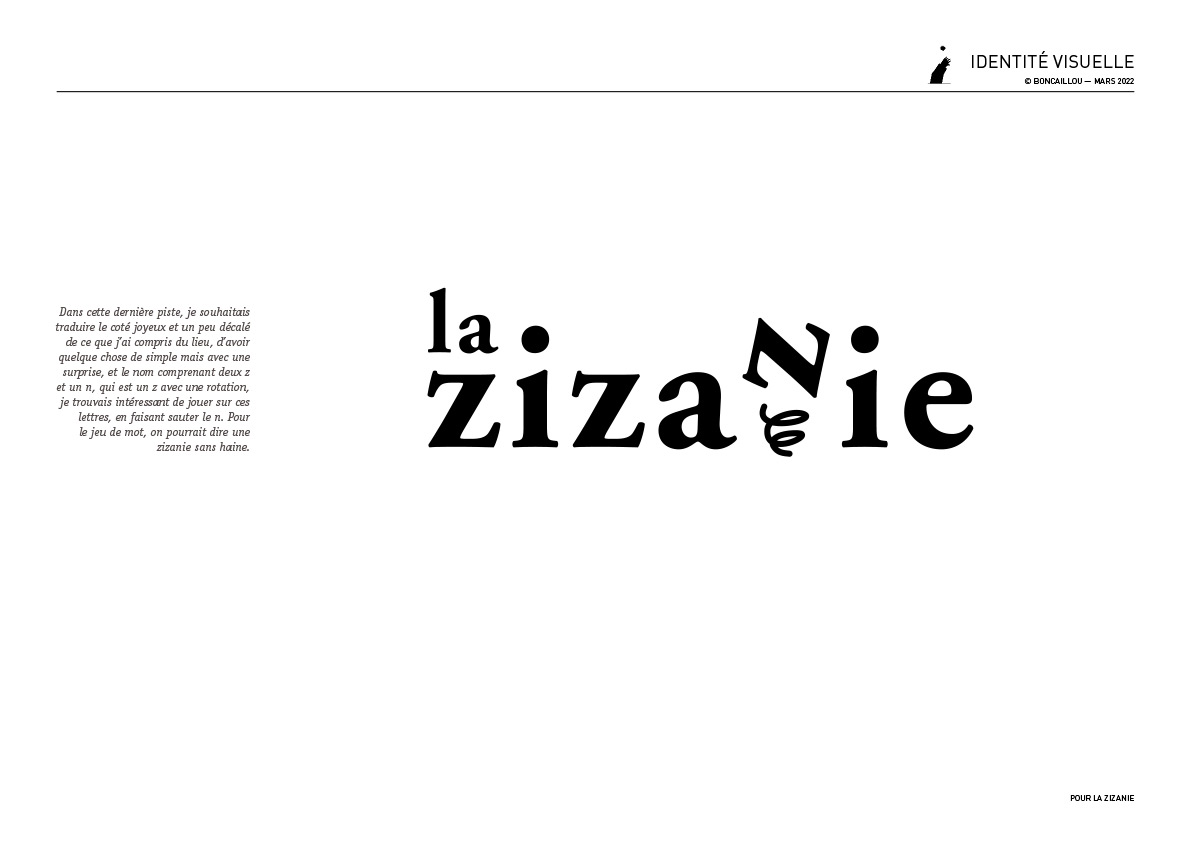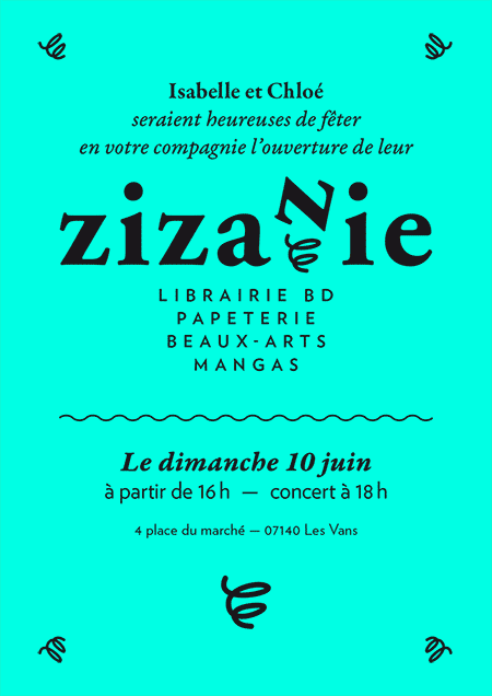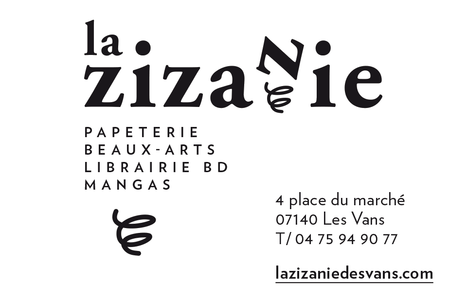 Logotype et identité de la librairie spécialisé en Bande Dessinée et beaux arts la Zizanie, aux Vans, en Ardèche.