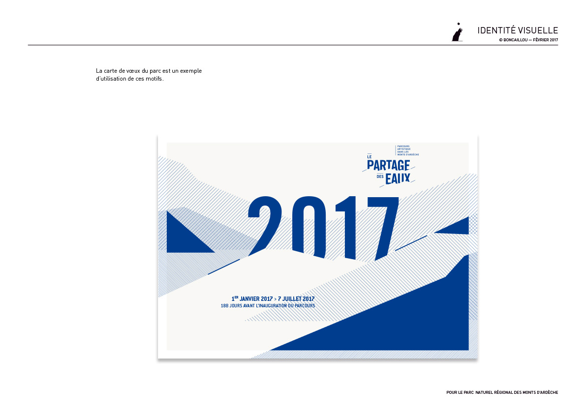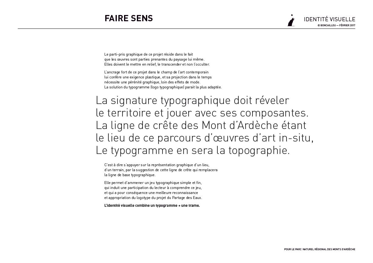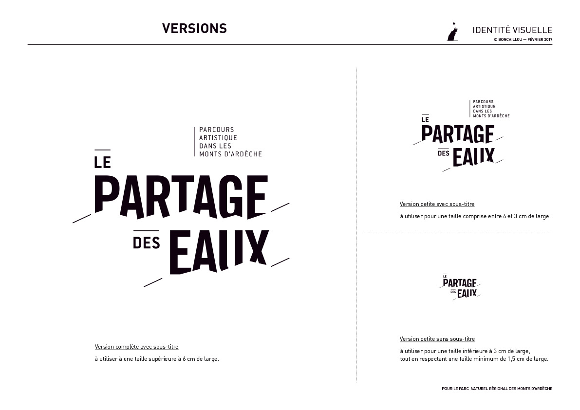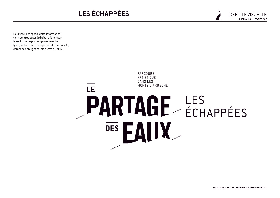 Appel d’offre du Parc Naturel Régional des Monts d’Ardèche, remporté, pour la conception graphique de l’identité du projet d’art contemporain le Partage des Eaux, un parcours artistique à « ciel ouvert » accueillant, au cœur d’un patrimoine exceptionnel, des œuvres d’art créées in situ.