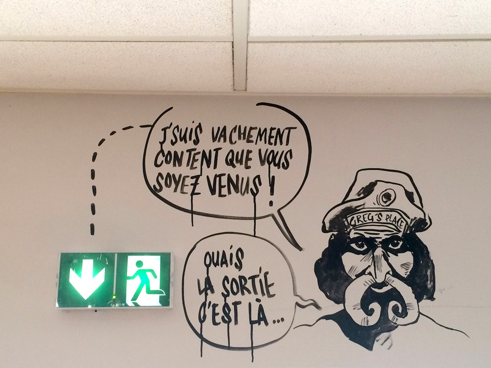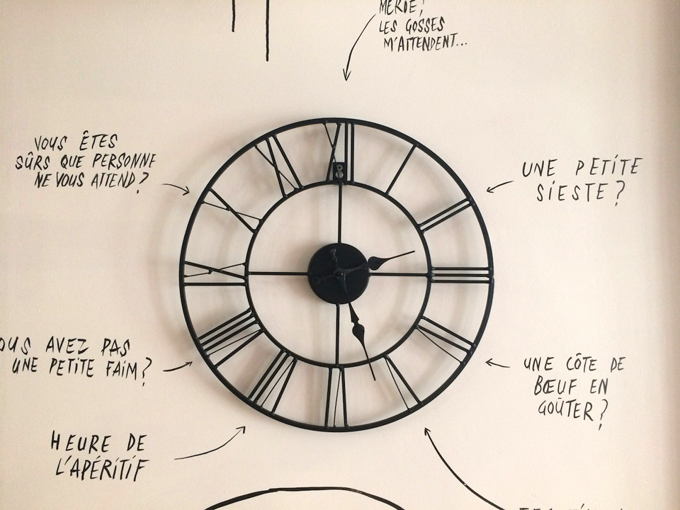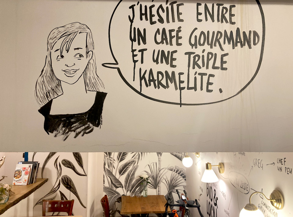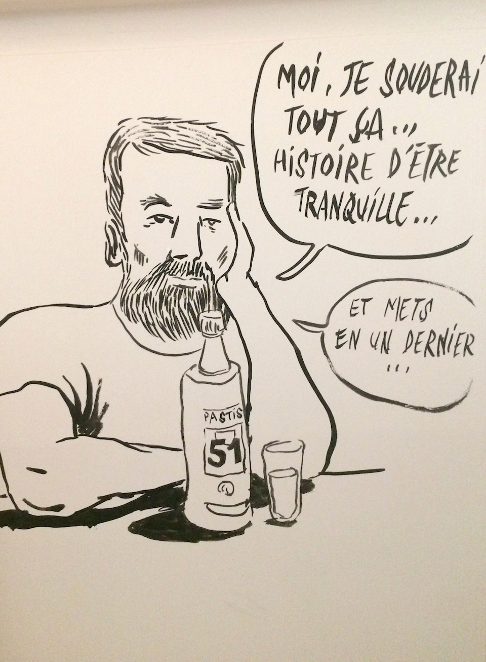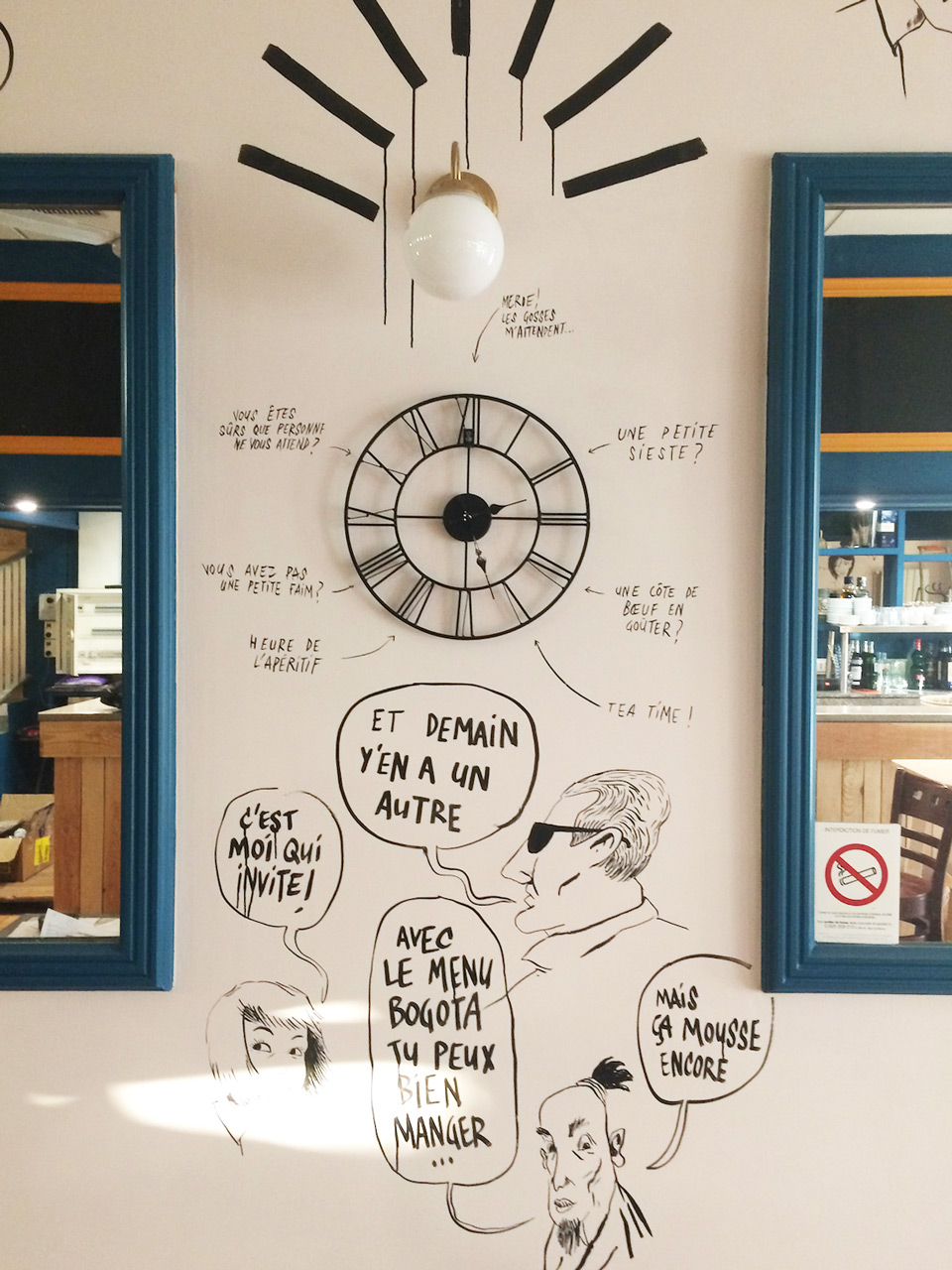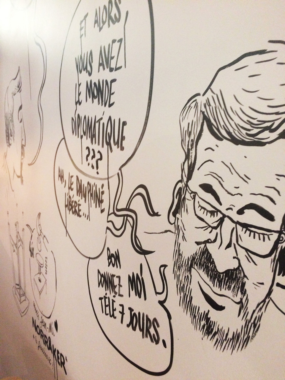 Dessins à l’encre sur les murs du restaurant, autour de la diversité culturelle et d’origine géographique, tout en s’ancrant dans cette partie de la vallée du rhône si particulière.