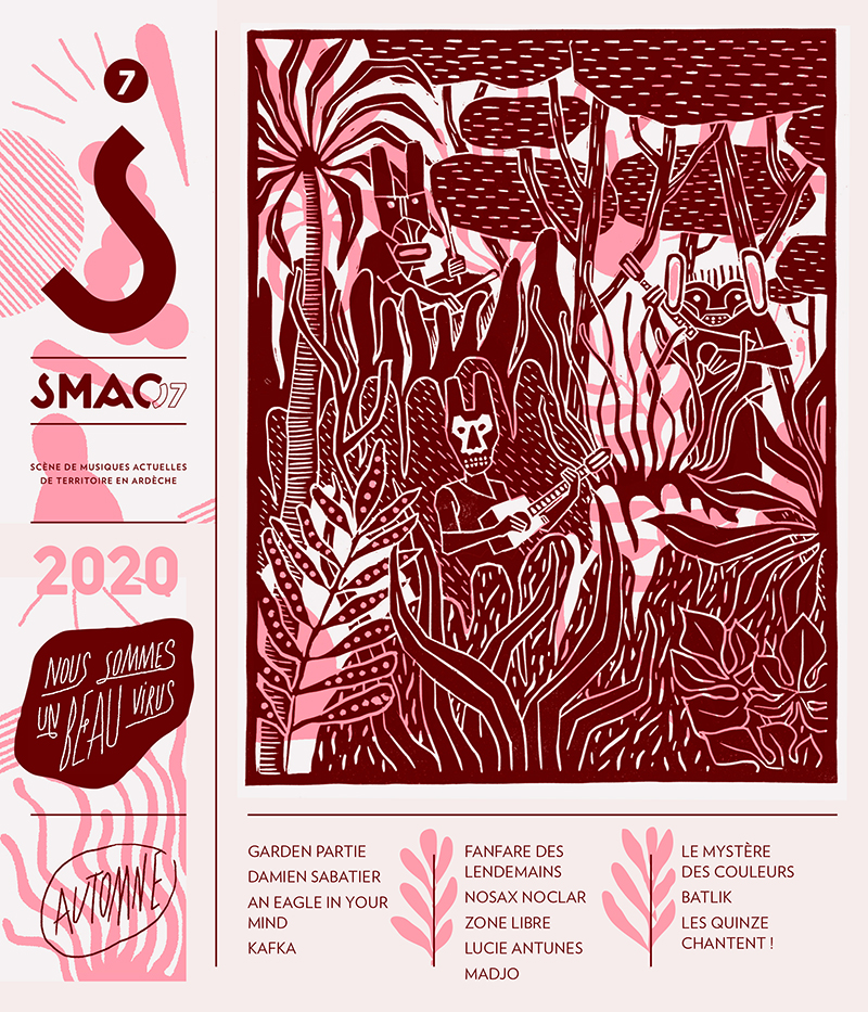 Un graphisme indigène, sous l’œil bienveillant de la pachamama et de la farigoule, dans la luxuriante jungle ardéchoise. Shaman un jour, ardéchois toujours.