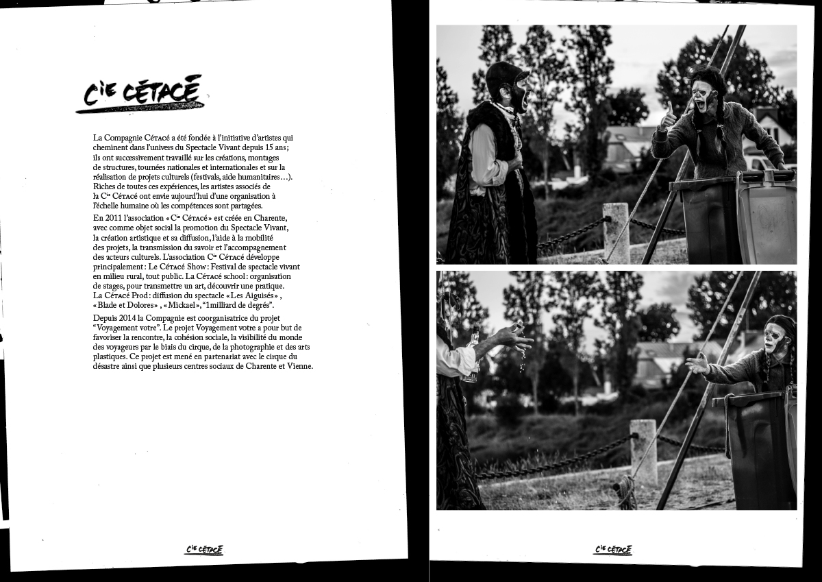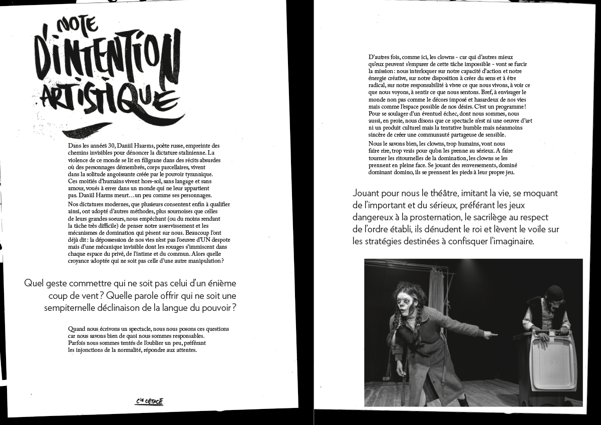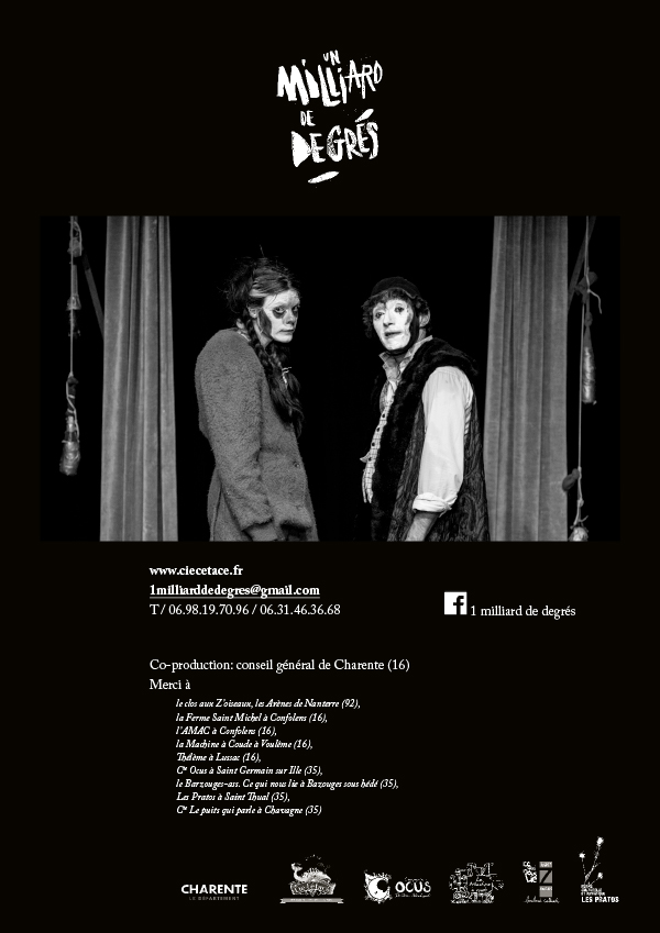 les copains de la compagnie Cétacé, joue et tourne leur spectacle clownesque Un milliard de Degrés. Affiche et dossier de présentation.