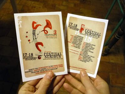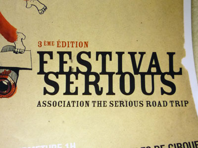 affiches et tracts du festival du serious road trip à Besançon, une assoc qu’elle est bien avec des vrais bouts de clowns dedans !!!