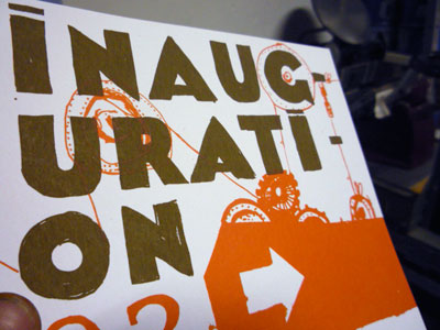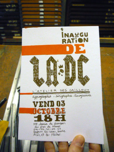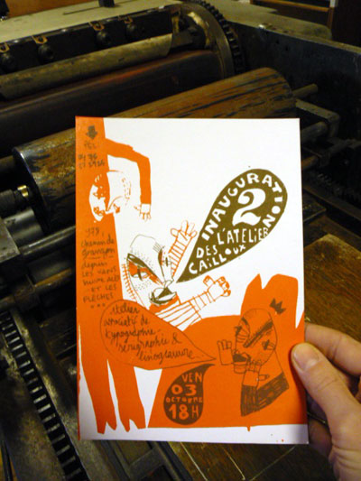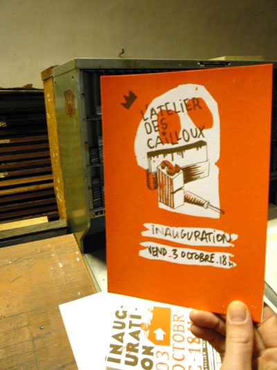 petite serie de tracts pour annoncer l’inauguration de notre atelier de sérigraphie, linogravure et typographie au plomb . . . . . .
