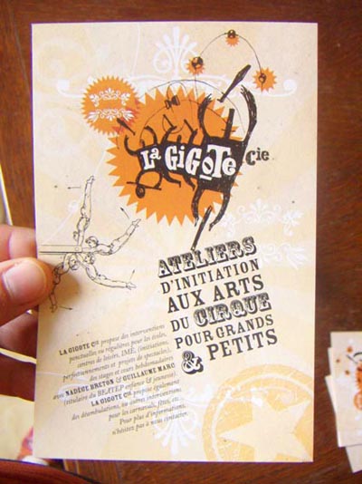 plaquette, tract, & carte de visite pour les ateliers d’initiation aux arts du cirque de la compagnie La Gigote.