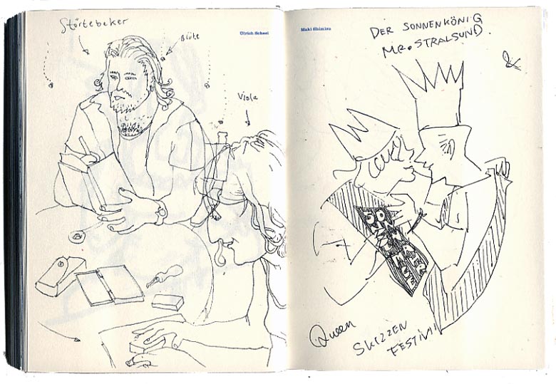 Le premier festival international du croquis à Stralsund a été une pure merveille, une trentaine d’illustrateurs, graphistes et autres talentueux jeunes gens du monde entier, réunis autour de workshops, d’apéros, de carnets remplis à vitesse grand V, que du bonheur .. . .