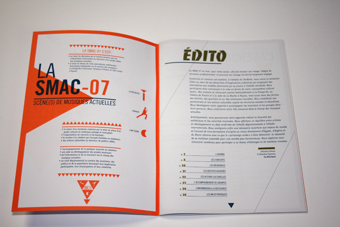 livret présentant la programmation de la SMAC 07, structure réunissant 3 associations pour la diffusion de musiques actuelles.