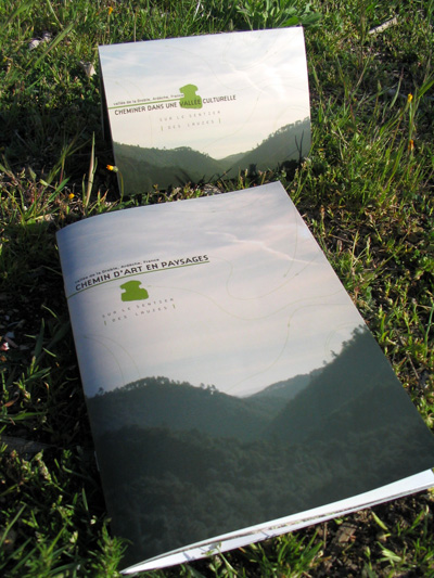 conception du topo guide du sentier des lauzes, association culturelle valorisant la vallée de la drobie, par des concerts, lectures, et interventions d’artistes land art sur un sentier de randonnée. Le logo de l’association a également été rafraîchi . .. .